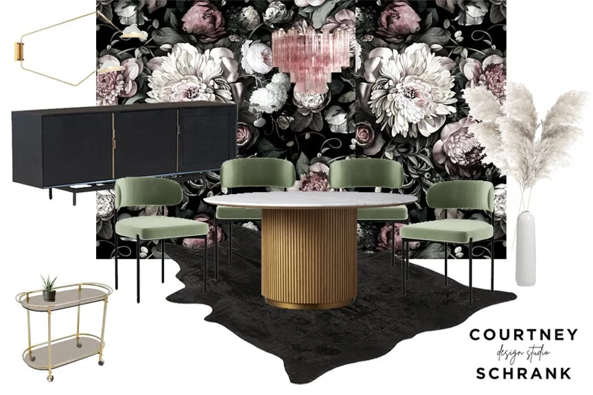 This earthy color palette paired with a moody wall color and bold wallpaper makes for the perfect stylish escape to lounge and relax in when you want to get away.